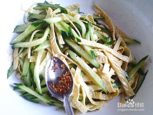 4. 将蒜末、盐、醋、香油混合成调味汁。