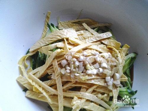 材料:王瓜、蒜末、盐、食用油。